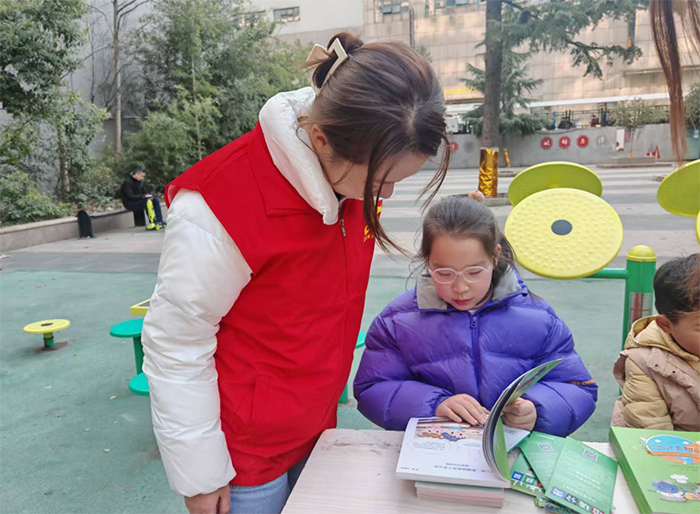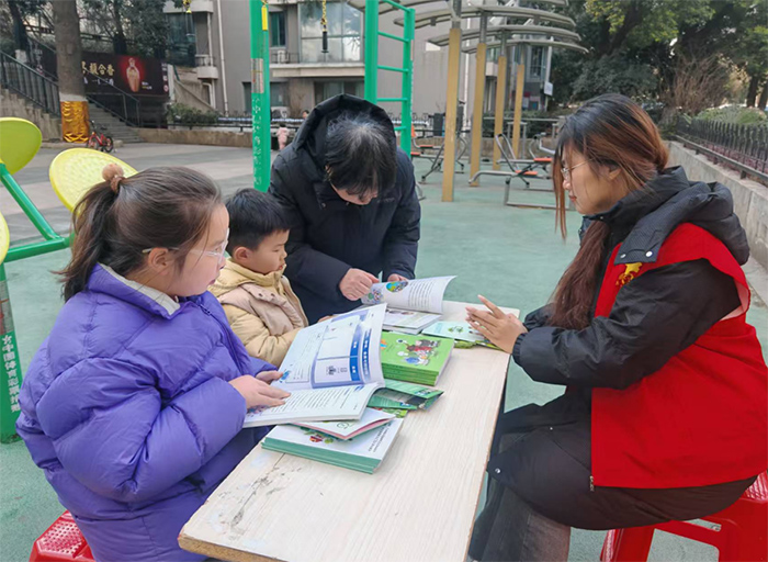图为志愿队成员在社区为小朋友普及垃圾分类知识 实践队员 何思涵 供图