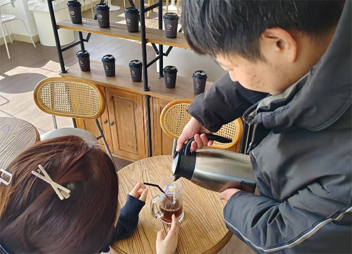 每天临近中午,景区游客中心迎来了越来越多的游客,面对许多疲惫的游客,实践团成员主动上前,为游客倒上一杯杯热水,有效的帮助游客缓解疲劳。
