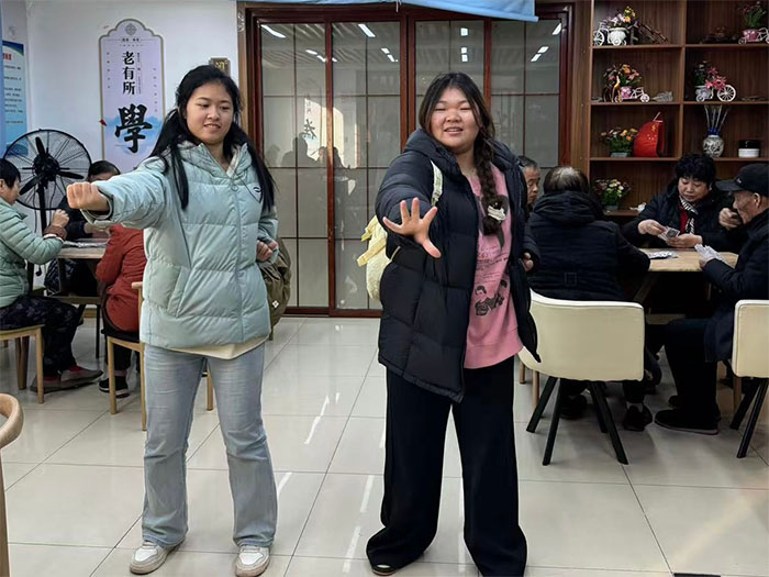 大学生们更是使出浑身解数积极组织文艺表演。悠扬的八段锦、欢快的舞蹈、妙趣横生的健康讲座,精彩纷呈的节目让老人们看得目不转睛,掌声和喝彩声此起彼伏。