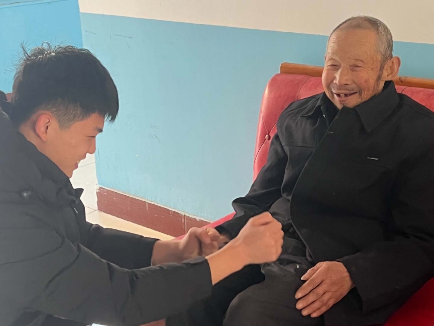 志愿者们手法娴熟,轻轻揉捏老人的肩膀、手臂,耐心询问力度是否合适。老人们惬意地靠在椅背上,脸上满是放松的神情。为老人按摩,不仅舒缓了老人身体的疲惫,更给予他们心灵慰藉,传递着社会对老年群体的关怀 。