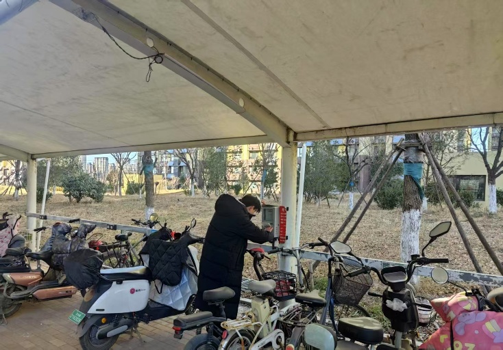 图为“即刻行动”实践团成员在排查充电棚隐患