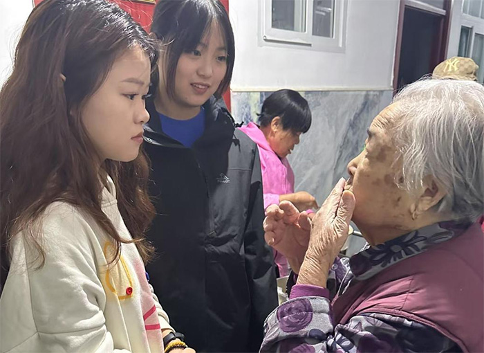 实践开始,实践团成员了解了养老院的基本情况,参观了老人的居住房间以及作息时间。两名成员正与老人亲切交流。老人热情地讲述着过去的故事,时而用手比划,成员们则专注倾听,不时点头回应。