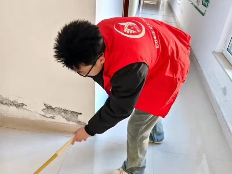 图为实践成员在为社区内的工作区域进行卫生打扫