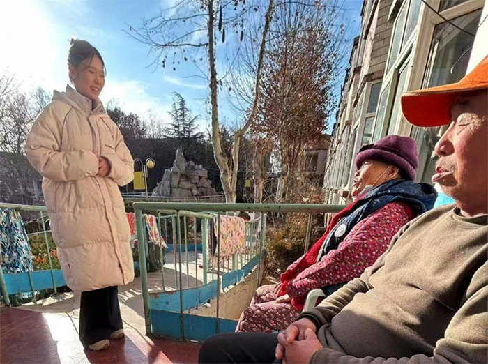 实践团成员耐心地倾听着老人讲述故事,与老人聊天,脸上洋溢着温暖的神情。老人们也格外开心,仿佛在这些年轻的面孔中找到了久违的亲切与陪伴。