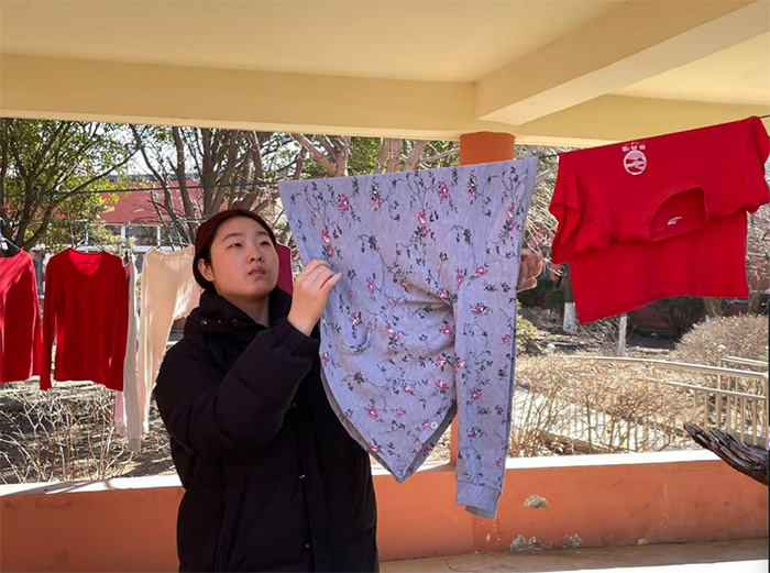 与此同时,实践团成员还细心地给老人们晾晒衣物,他们帮助老人们整理床铺,趁着阳光明媚的正午给老人们晾晒衣服。