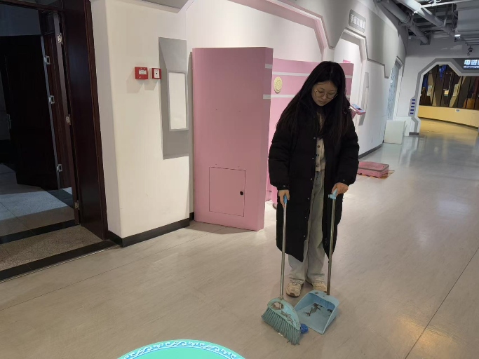 活动期间,志愿者们分工明确,迅速投入到各项服务工作中。在卫生清洁方面,志愿者们手持清洁工具,仔细擦拭每一处展柜,清扫地面的每一个角落,不放过任何一个卫生死角。经过他们的辛勤劳作,科技馆内窗明几净,为参观者营造了整洁舒适的参观环境。