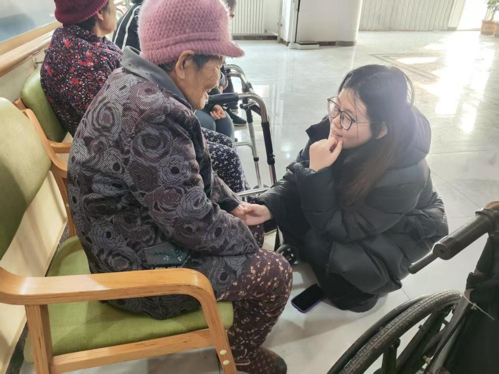 与此同时,申庆宜坐在老人身旁,耐心倾听他们的故事和心声。她的陪伴让老人们的脸上不时露出笑容,整个养老院似乎都充满了生机。