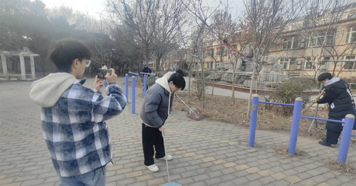 图为实践团成员集体大扫除