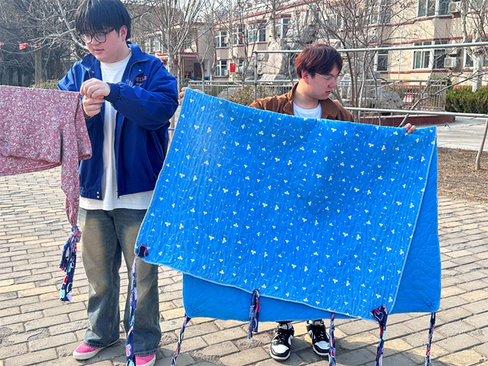 在实践活动中,实践团成员们走进每间老人房间,轻轻拆下床单,拿到院子里晾晒。他们仔细抚平褶皱,让阳光尽情穿透。老人们坐在一旁,脸上满是笑意,念叨着孩子们的贴心。