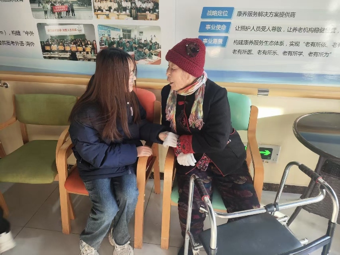 图为实践团成员董敬雪董敬雪陪老人聊天
