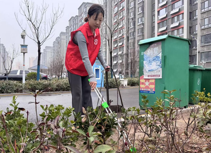 实践过程中,志愿者们分工明确,动作娴熟。有的在室内协助居民整理物品,有的在室外维护公共卫生,还有的耐心解答居民关于消防安全的问题。图中,一名志愿者正弯腰用工具清理路边杂草,身后是高楼林立的居住区,展现了城市与志愿服务的交融。6天的活动结束后,祥和社区的居民们对实践团的到来留下了深刻印象,社区负责人透露,志愿者的服务不仅改善了生活环境,还增进了社区居民之间的互动。