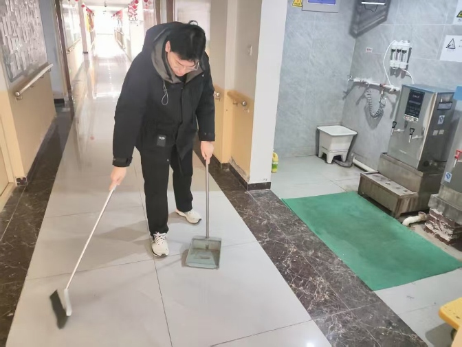 活动期间,实践团成员们各展所能,积极投身于各项服务工作。迟翔同学主动承担起楼道卫生的打扫任务,将每一层楼道都清扫得一尘不染,为老人们营造了整洁的公共环境。