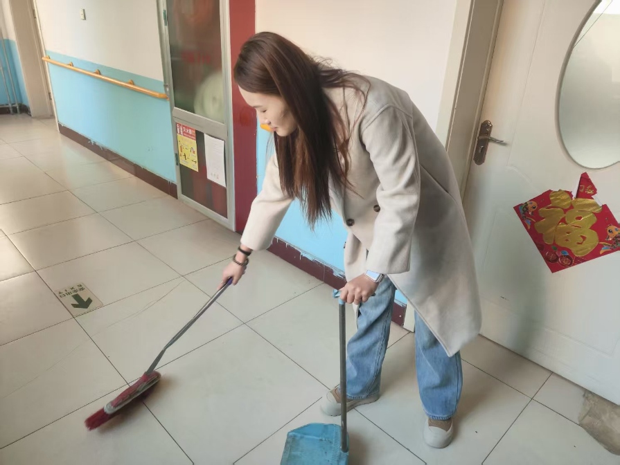 王子嫚积极与养老院负责人沟通各项事宜,保障活动顺利进行。邢新雨陪老人下棋锻炼,在对弈中欢声笑语不断,锻炼了老人的思维能力。陈淑冉同学积极打扫养老院卫生,让环境焕然一新,为老人们营造了舒适的散步空间。