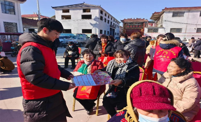 1月16日实践团成员在黄堽镇人民政府的支持下在黄堽镇黄堽村文化广场开展了2025牡丹区“黄河大集”新春季启动仪式,2025牡丹区“黄河大集”新春季活动启动仪式在牡丹区黄堽镇黄堽村文化广场隆重举行。实践团成员协助现场布置,引导群众有序入场,维持现场秩序,活动现场热闹非凡,现场还有送新年挂历等活动,实践团成员在各个环节协助工作人员,保障活动顺利进行。