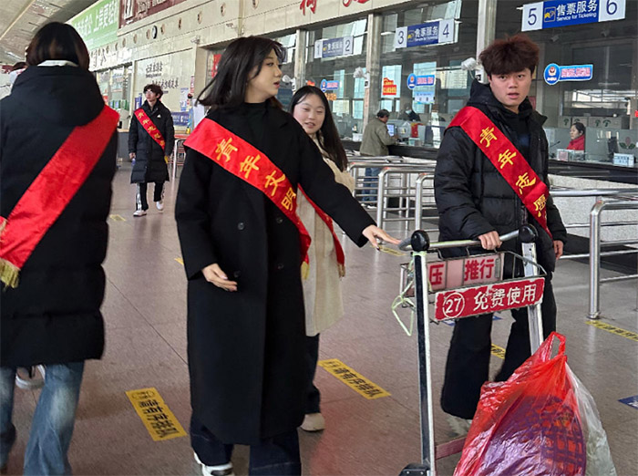 群众返乡回家,带着满满的行囊;参加实践团的成员放弃与家人团聚的机会,带着满满的诚意,用自己的实际行动为旅客提供暖心服务,诠释着志愿服务的真谛,为春运工作献上了青春力量。