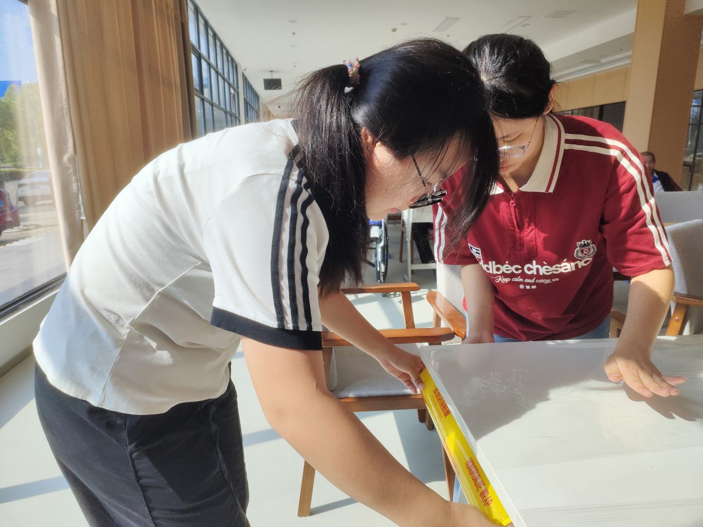 图为志愿者们正在帮忙准备活动开展。方晓凤 供图