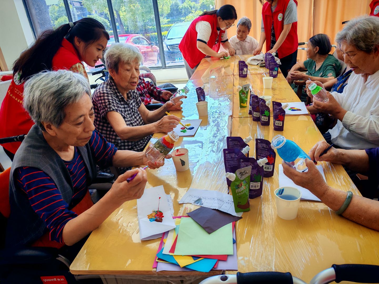 图为老人们正在给小瓶子涂颜料。赵祎婷 供图