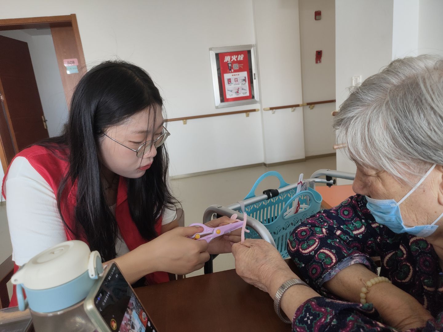 6月29日,安徽工业大学“夕阳红”志愿服务队走进安徽省马鞍山市善德老年公寓,用年轻的双手传递关怀,用真诚的话语驱散孤独。志愿者们与公寓社工部、护理部、办公室、失智专区部的相关联合作,为公寓的老人带来了便利与舒适的体验。志愿者们推老人下来并教老人玩涂瓶子叠纸游戏;接送老人上下楼,协助涂瓶子叠纸活动,查找并整理档案,在失智专区陪老人;陪老人做复健,包括上台阶、搀扶老人走路、辅助老人走路使用康复器材等并陪伴老人做帆布包绘画活动。每一幕画面都凝聚着奉献的力量。此行让青年在实践中体悟责任担当,用行动温暖老人晚年时光,更以青春力量传递敬老美德,让志愿精神在岁月交汇中绽放光芒。(通讯员 叶欣雨)