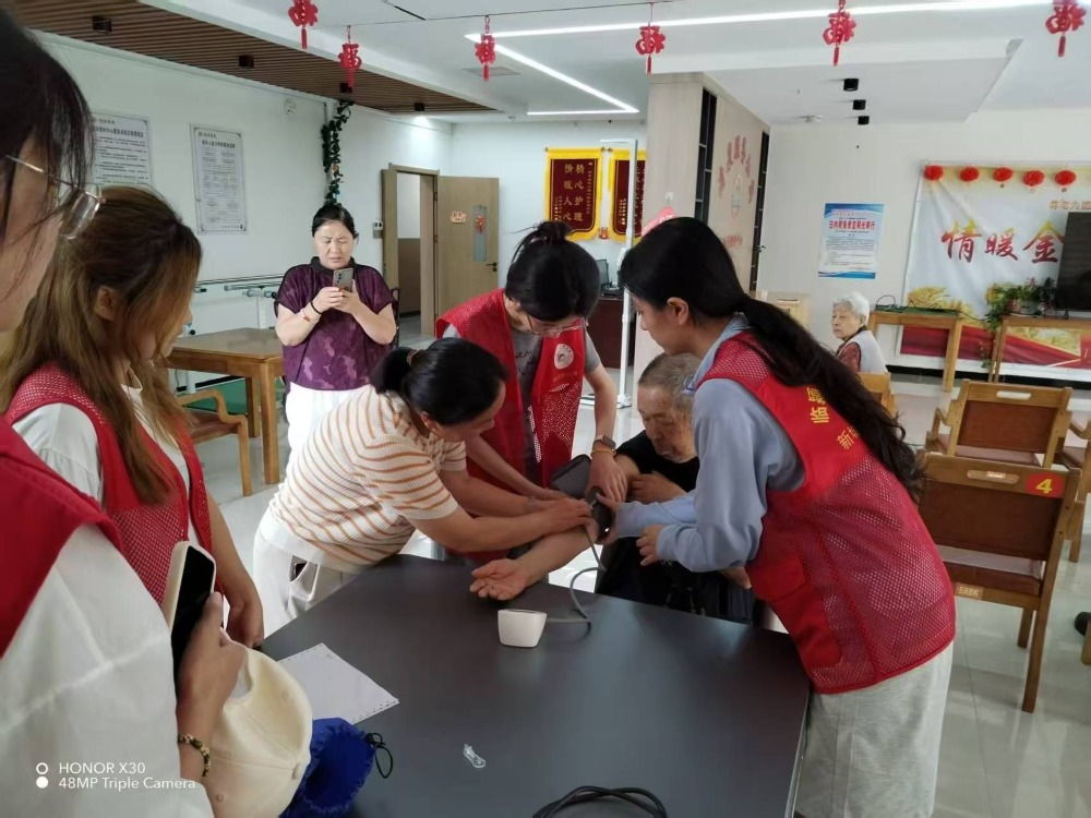 活动期间,志愿者们走进敬老院,开启了暖心陪伴之旅。大家围坐在老人们身旁,如家人般亲切交谈,耐心倾听他们回忆过往的故事,现场充满欢声笑语,到处洋溢着温暖与欢乐的氛围。除了精神上的慰藉,志愿者们还送上了贴心的健康服务。他们细心地为每位老人测量血压,详细记录健康数据,并针对不同老人的身体状况,提供个性化的饮食建议和科学作息指导,用通俗易懂的语言向老人们讲解日常保健要点,让关爱落到实处。