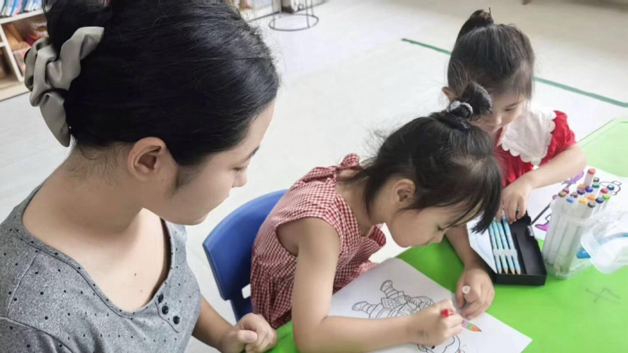 图为实践队队员指导小朋友们画画。闫亦凡 供图