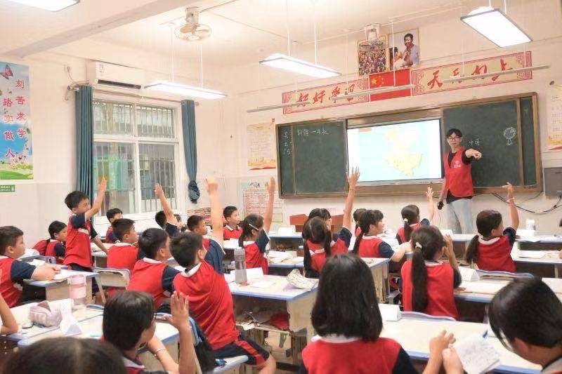 地理大冒险:探秘中国省份与教育公平之旅 最具创新性的"地理大冒险"活动将整日活动推向高潮。“同学们是怎么从家里来到学校的呢?走路?还是爸爸妈妈开车接送?要花费多长的世界呢?”队伍成员刘秦伯的提问拉开活动的帷幕,这个贴近孩子们生活的问题引发了孩子们的热烈讨论,孩子们踊跃举手分享自己的上学之路。在讨论结束后,刘秦伯老师播放了山区小孩的艰苦上学之路的纪实视频,崎岖的山路,湍急的溪流让教室内陷入沉思。刘秦伯老师阐述山区的小孩上学条件的艰辛,但可以通过教育走出困境,从而鼓励学生好好学习。