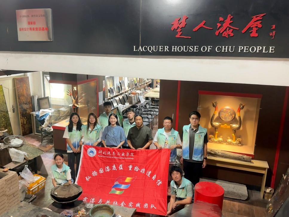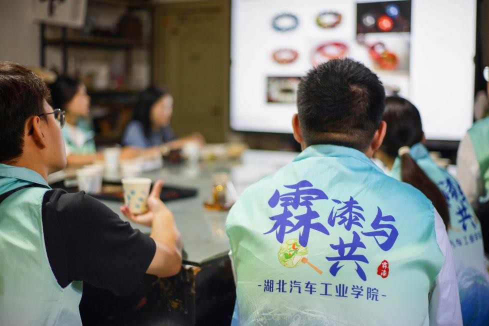 走进千年漆艺,探索非遗新生 为探寻中国传统大漆工艺的深厚底蕴,7 月 7 日,湖北汽车工业学院 “霖漆与共” 实践团队深入竹溪,探访这一国家级非物质文化遗产 —— 竹溪大漆。通过亲身感受其跨越千年的历史韵味、精湛绝伦的制作工艺、独特的生态健康优势以及新时代下的创新脉动,团队对非遗的保护与活态传承有了更为深入且透彻的认知