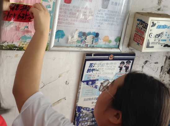 实践团成员发现楼道便民张贴栏里面广告已经贴满,而且很多重复性广告于是实践团成员帮忙清理了楼道中的大部分重复性广告。通过这次活动志愿者知道了社区网格员的工作不容易。