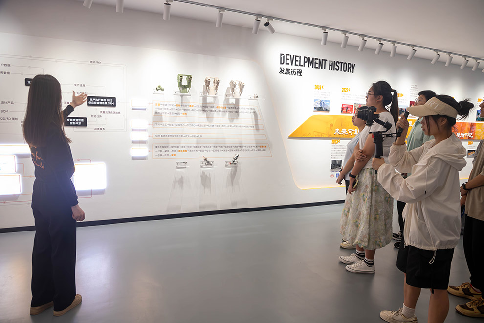 7月9日上午,实践队首站抵达青岛易斯寰球流体控制有限公司。在企业崔经理的引导下,队员们先参观了公司展厅,系统了解企业ESG发展历程、全系列阀门产品的技术特性、应用领域及服务客户群体;随后深入生产车间,现场观摩阀门从零部件加工到成品检验的全流程,直观感受现代化生产的严谨与规范。实地考察后,公司总经理张文利、执行总经理李芸、综合管理部经理郑芳芳与实践队成员召开座谈会。围绕“求职准备核心要素”“化工专业职业方向选择”“双碳目标下企业绿色转型路径”等议题,队员们结合专业所学积极提问。企业领导结合行业经验与管理实践,从“大学生应具备的核心竞争力”“职业规划中的取舍与坚持”“绿色转型中的技术创新与人才需求”等方面逐一回应,给出切实有效的且富有建设性的建议,为队员们搭建起从校园到职场的认知桥梁。