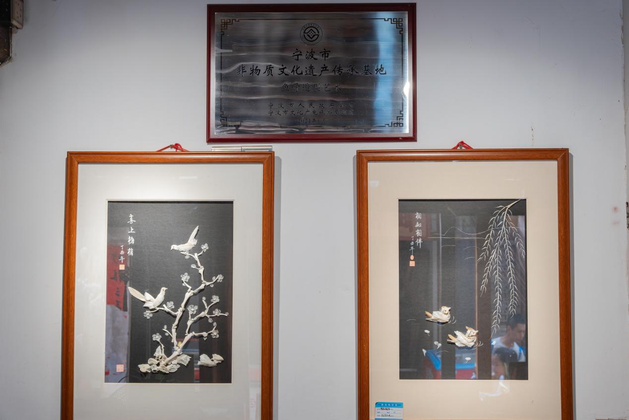 在探访古城文化的过程中,小分队遇见象山鱼骨造型艺术代表性传承人裘亚素并与其展开深度访谈。据裘亚素介绍,鱼骨画源自渔民将废弃鱼骨转化为祈福装饰的传统,2021年入选宁波市级非遗名录。其制作需精选鲻鱼、鲈鱼等本地鱼种的脊椎骨,经蒸煮脱脂、自然晾晒后,通过拼接定型形成花鸟、山水等意象。