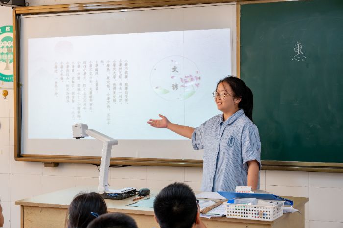 小暑节气美育课上,“春雨惊春清谷天,夏满芒夏暑相连……”二十四节气歌悠扬响起,课程正式开启。老师首先详细介绍了小暑的历史渊源,接着播放了科普视频,生动展示了与小暑相关的诗句、避暑方法和丰富民俗。在知识问答环节,同学们踊跃参与,积极互动,进一步加深了对小暑节气知识的认识。