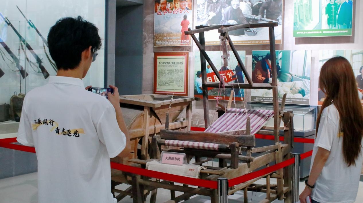 实践团成员踏入了红嫂文化博物馆这座承载着厚重历史与伟大精神的殿堂。红嫂文化博物馆分为红嫂群英、红嫂传奇、红嫂传人、红嫂情怀四个主题展区,生动展示了沂蒙山地区妇女军民在中国共产党的领导下,创建沂蒙革命根据地的艰苦历程和辉煌业绩,真实再现了“爱党爱军、忠诚坚韧、勤劳勇敢、无私奉献”的红嫂精神。实践团成员通过珍贵的历史照片、实物展陈和场景复原,深入了解了沂蒙红嫂在革命战争年代舍生忘死、拥军支前的感人事迹。她们用柔弱的肩膀扛起了革命的重担。实践团成员在展台前驻足时,那架支前织布机正以沉默的姿态,编织着时空的褶皱。
