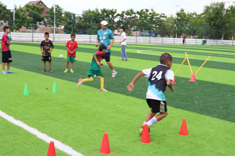 午后的切吉村足球场,20余名身着统一球衣的“小球员”正在进行传球、射门等基础训练。训练间隙,“小球员”围坐一起分享训练经验、交流进球技巧、展望足球梦想。借此机会,实践队队员也与球队教练开展了详细交流。据了解,在援疆政策的扶持与村党组织的支持下,切吉村建起了标准足球场,购置了专业的训练设备与运动器材,队员数量也由最初的10余人发展至现在的60余人。目前,小班、大班两支球队利用假期正在抓紧训练,球队整体水平迅速提升。