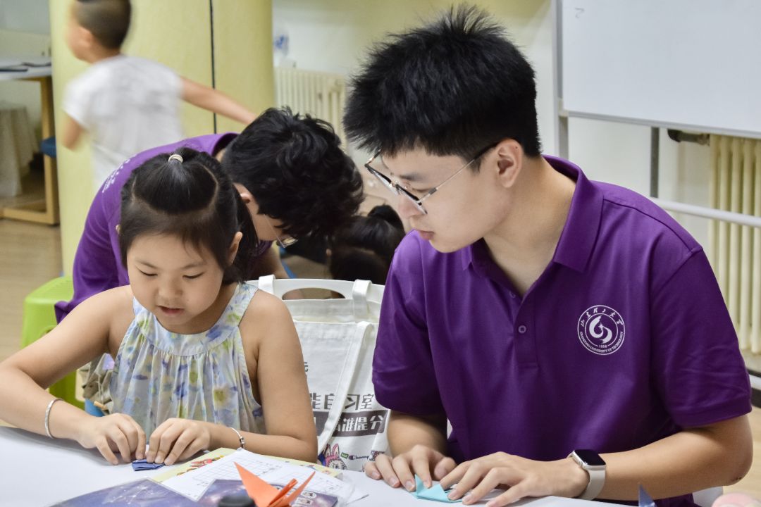 巧手折万物,素纸变千形。折纸承载着人们的工艺智慧,兼具艺术审美与科学内涵。为丰富孩子们的课余生活,提高其手脑并用的能力,以及对折纸文化的兴趣,7月18日上午,山东理工大学“循梦而行”实践团前往齐悦国际社区开展“齐小团”折纸手工课。通过折纸让小朋友们进一步体会折纸艺术,感受折纸的独特魅力。