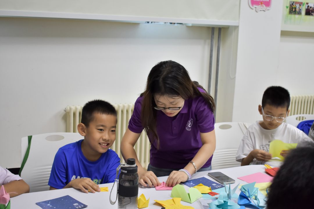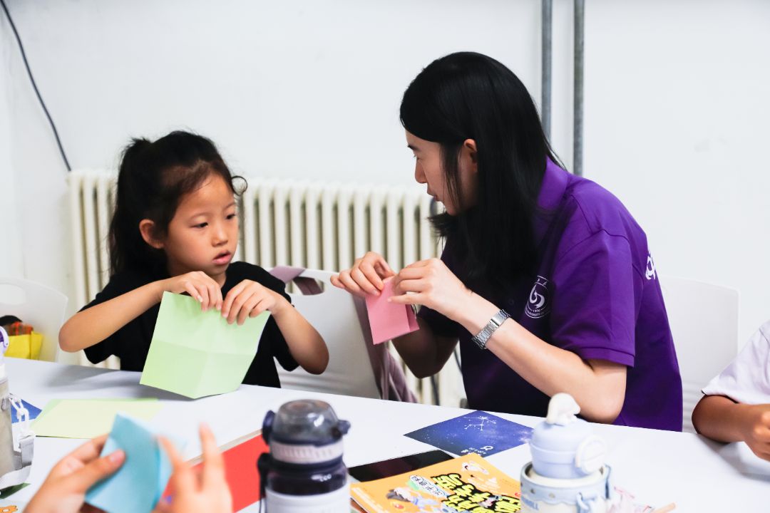 为保障折纸课程的顺利进行,实践团成员于课程前一天学习基本的折纸技巧,并能够掌握一些基本形状的折法。课堂上,团队成员们通过生动有趣的讲解和丰富多彩的图片,向小朋友们详细介绍了中国的折纸文化。实践团成员以绘声绘色的讲解在带动课堂气氛的同时,也激发起了小朋友们对折纸的强烈兴趣。随后,实践团成员们展示了几种常见的折纸形状,例如纸飞机、千纸鹤等。并在小朋友们中间演示了这些形状的具体折法,实践团成员从容不迫、耐心教导,确保每位小朋友都能跟得上折纸进度、掌握所学内容。