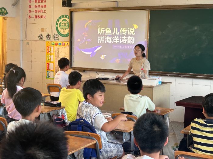 清晨,第一缕阳光照亮象山县高塘岛——这座东海之滨的小岛,教室里响起了孩子们爽朗的笑声,他们眼中闪烁着强烈的求知光芒。宁波大学教师教育学院滴水行动之海韵文耕小分队在假日学校的第五天,推出了四节以“海”为核心的课程,它们像四颗璀璨的宝石,共同构成了一场融合科学探索、文学滋养、视听震撼与诗意创作的海洋启蒙盛宴。大学生志愿者们凭借真诚与智慧,为海岛孩童开启了一扇通往蓝色世界的奇妙大门。