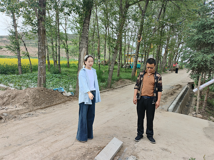 村里正进行道路修缮工程,实践团成员利用间隙与村干部一同在村内走访。沿着待修的路段查看,听村干部介绍施工进展和遇到的问题,不时就路面宽度、排水设计等提出自己的看法。