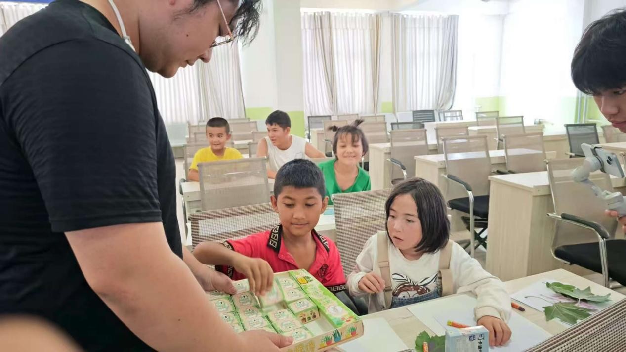 活动开始前,实践团活动负责人高轩与南网社区负责人再努尔·艾麦尔进行了对接。活动当天,南网社区的活动室内热闹非凡,孩子们早早地就来到现场,脸上洋溢着期待的笑容。活动期间,志愿服务团队的队员们经过精心准备,运用所学植物学知识,将复杂的生态知识转化为孩子们易于理解和接受的内容。让孩子们深刻认识到生态平衡对人类生存和发展的重要性。