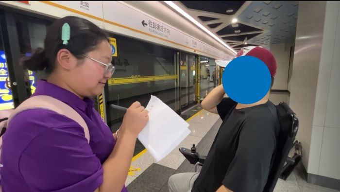 实践团成员见到了常乘地铁出行的残疾人士王先生。“现在出入站都有无障碍电梯,全程也会有工作人员的帮助,济南地铁挺好的。”王先生平静地坐在轮椅上,语气里有对地铁服务的认可,也有对细节的肯定。他提到,换乘时工作人员都会主动把轮椅斜坡板拿出来摆上,并耐心帮助。