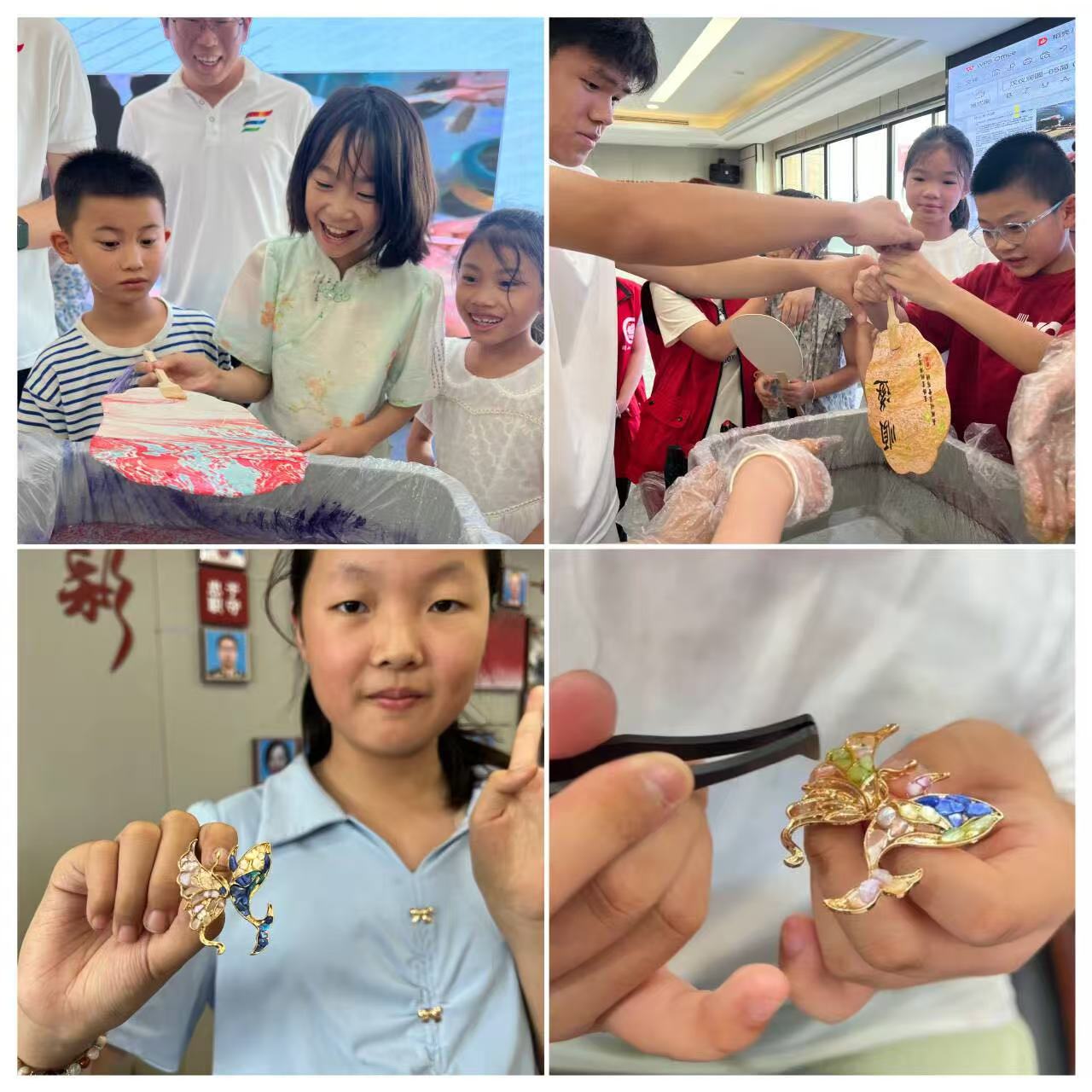 非遗走入社区,童心共绘传承图 在南京溧水团山社区,团队以“理论讲解+实践体验”的形式开展“大漆与螺钿”课程。“小小宣讲员”周正分享了自己对漆器工艺的感受,孩子们在队员们的指导下,体验了漆扇、螺钿胸针制作。家长们纷纷表示,活动“有趣又有教育意义”。