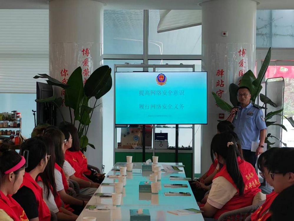 荣成市公安局网安大队车晓东队长围绕大学生网络安全意识提升展开讲解。车晓东队长结合具体案例深入剖析了网络安全防范要点,指出在互联网高速发展的当下,新型信息资产窃取手段层出不穷,呼吁警民携手共建绿色网络生态,为支教活动营造安全的网络环境。
