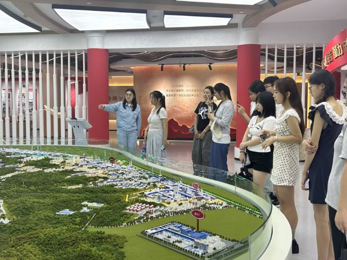 7月7日下午2点,实践队的10名队员走进中国石化齐鲁石化公司发展陈列馆,开启了一场兼具工业底蕴与绿色发展理念的实践学习之旅。