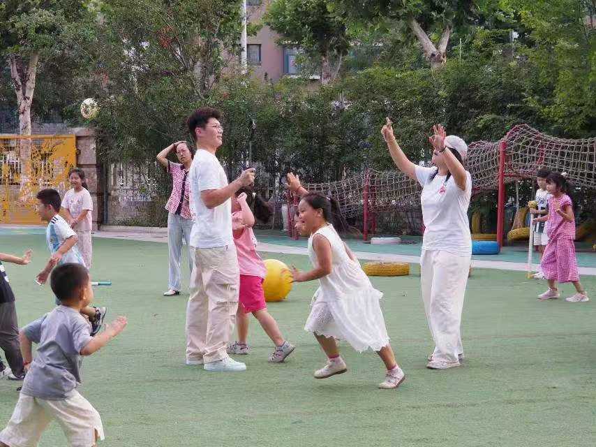 “一二三,木头人!”,实践团成员于欣茹带领小朋友们体验规则与乐趣。活动中,于欣茹耐心讲解规则、亲身示范,鼓励孩子们在“木头人”口令下达时保持静止姿态,锻炼其反应能力和身体控制力。小朋友们热情高涨,积极参与,在奔跑与定格的转换间充满了欢声笑语,现场气氛热烈而融洽。此次户外活动不仅丰富了幼儿园小朋友的课余生活,让他们在游戏中体验快乐、学习规则,也展现了大学生的社会责任感和服务意识,为促进幼儿身心健康发展贡献了青春力量,架起了高校与社区互动的新桥梁。