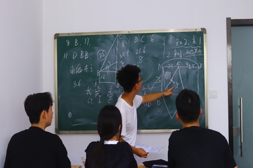 图为实践团成员曹毅恒板书讲解数学题。山东理工大学贾凯宜提供