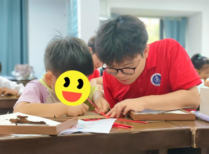 图为团队成员带领孩子开展手工活动 供图/唐谨
