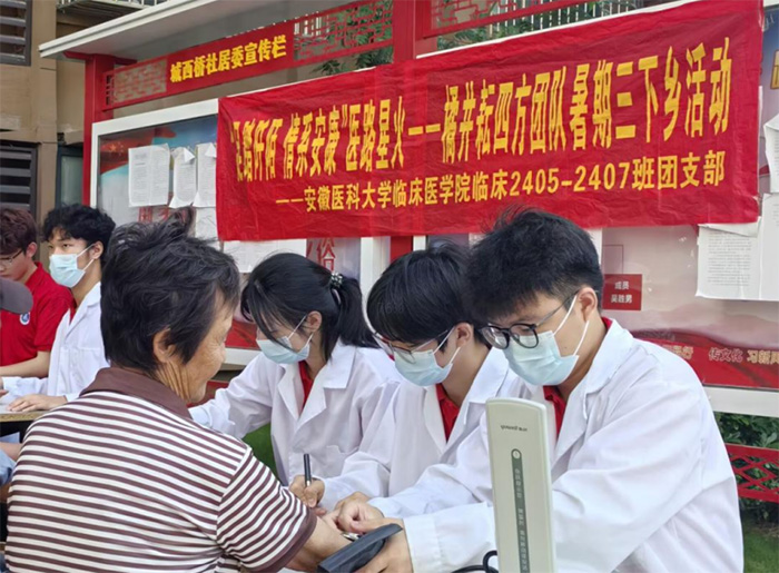 盛夏的合肥高新区城西桥中心周边各社区,跃动着一抹抹醒目的“白”——他们是安徽医科大学临床医学院“医路星火—橘井‘耘’四方”暑期三下乡社会实践团队的10名青年学子。6月27日至30日,这支队伍深入基层,将医学知识转化为服务力量,以实际行动助力健康中国。