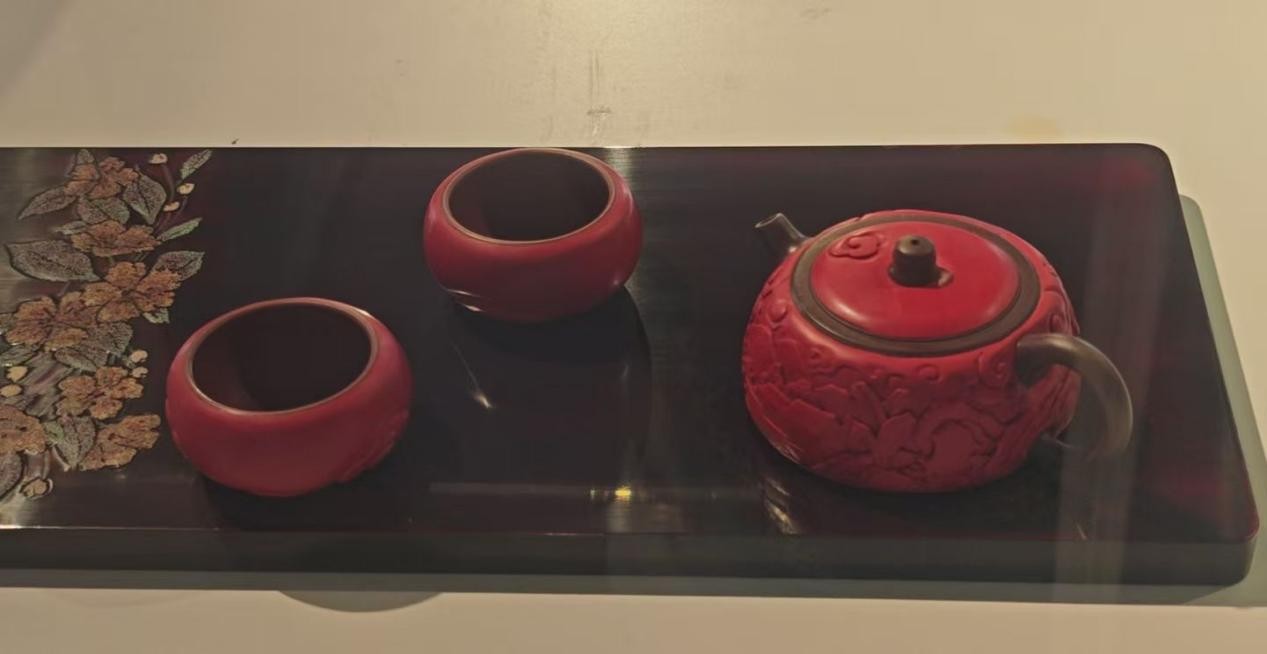 图为彭涛老师工作室茶壶茶杯漆艺展品。鲜昱涵 供图