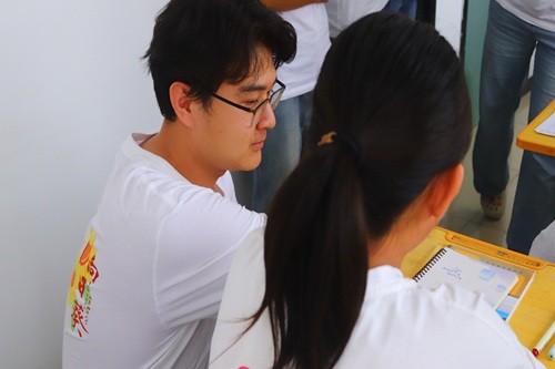 图为实践团成员崔裕昊为学生指导。山东理工大学贾凯宜提供