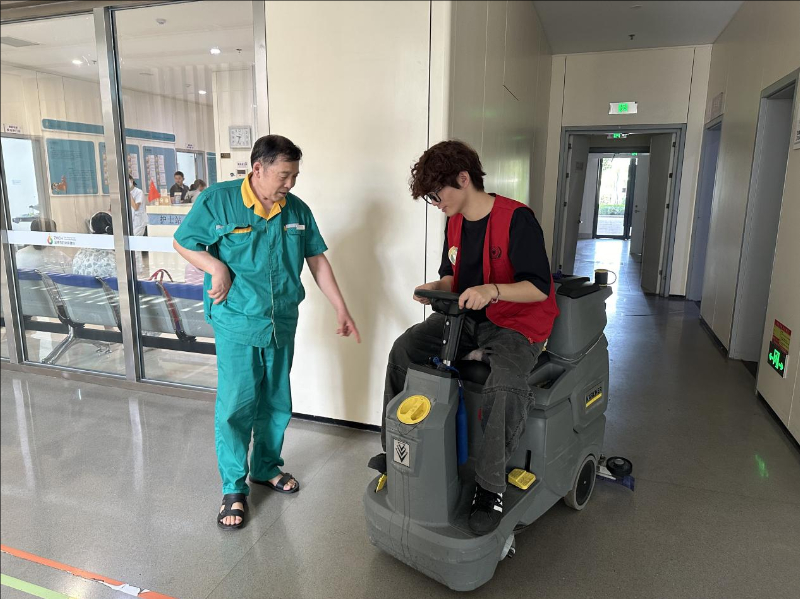 随着负责人的脚步前往下一个科室,成员们体验了中医文化的博大精深,接受中医的知识熏陶。同时,医院主张中西医结合,例如毛发疾病、心理疾病和妇科疾病等方面都采用了中西医结合的技术。在参观完各个代表性科室之后,成员们自觉提出协助医院整理和清洁医院的部分卫生,以此来更好的了解医护工作者平时的工作。成员们运用现代化打扫工具展开打扫清洁的工作,他们细致地擦拭桌面,认真地清扫地面,对每个角落进行消毒,有效地减轻了医护人员的工作压力。这一行动不仅是对医院环境的净化和美化,更是对医护人员辛勤付出的崇高敬意,以及对生命和健康深深的尊重与呵护。