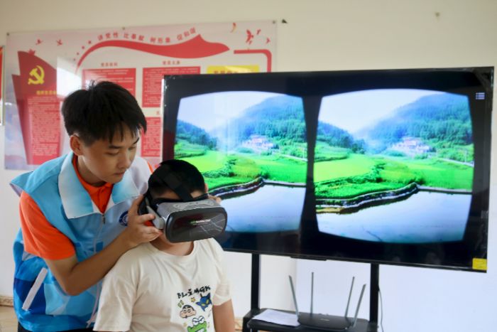 7月24日至25日,湖南工商大学“望山”青禾服务队在湘西州古丈县白溪关村党群服务中心活动室,为当地青少年开展了以VR技术为载体的沉浸式体验活动。作为“芙蓉学子·乡村振兴”公益计划的重要实践,活动以VR技术为支点,让红色故事可触可感、家乡风貌可观可叹、安全防护可知可行,为当地青少年的成长之路增添了一段独特的科技记忆。