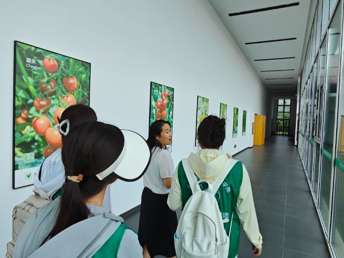 在负责人的带领下,实践团首先走进了集团的研发中心,映入眼的是墙上悬挂的育种专家简介。负责人介绍,集团汇聚了国内外顶尖育种人才,包括来自荷兰、希腊的国际专家,以及国内在茄果类研究领域颇具影响力的团队,其中徐永士及其团队研发的西瓜、甜瓜品种广受市场认可。“我们的研究重心集中在茄果类蔬菜,像黄瓜、番茄、辣椒都是核心研发对象。”负责人指着实验室里的设备说道。实践团了解到,研发中心配备了385套先进设备,总价值约一亿元,为种子研发与检测提供了坚实的硬件支撑。从种子杂交组合到果实、叶片检测,科研人员在这里开展着细致入微的研究工作,不断探索优质品种的培育方法。